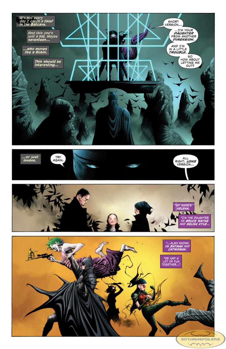 Spoiler Alert! Images have surfaced of the upcoming Batman Superman #8. In this issue we see that Huntress is (Robin in Earth 2 comic ) caged in the bat cave talking to Batman. She is asking for his help and tries to explain the crazy story of what has happened to her.