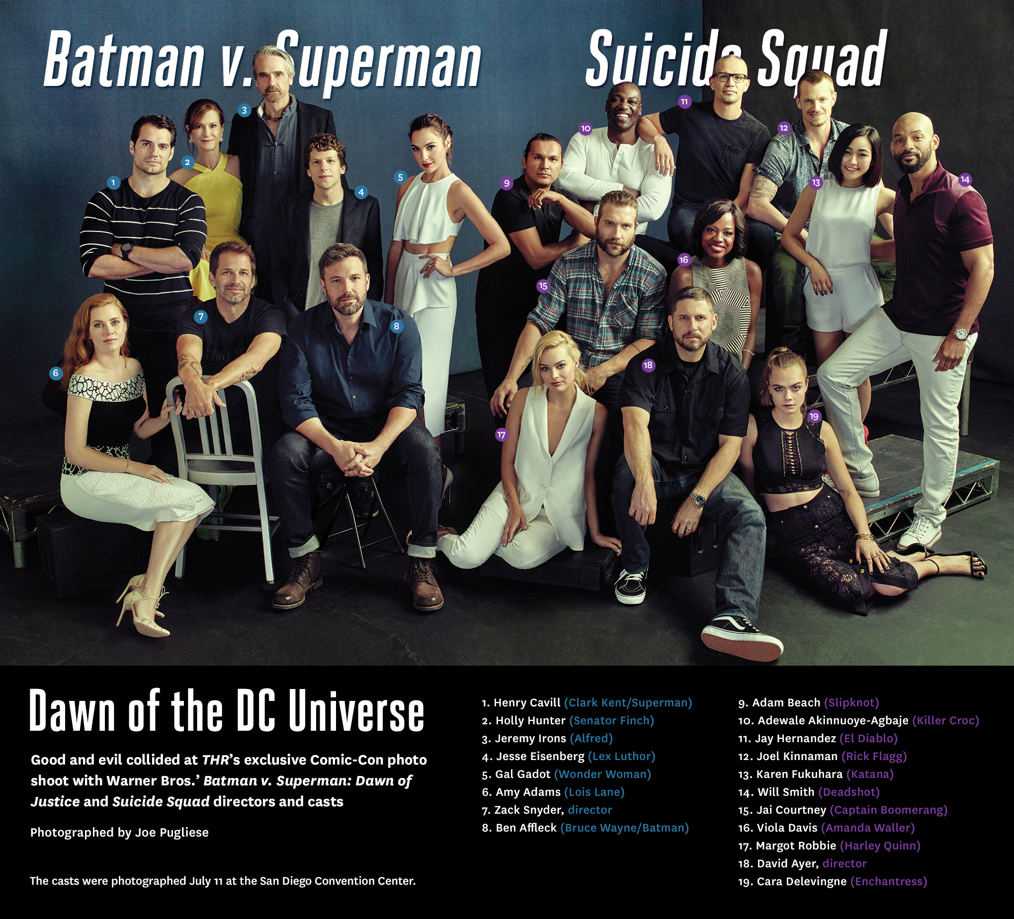 After incredible back-to-back presentations at this past weekend’s Comic-Con in San Diego, the DC Cinematic Universe gathered for a photo-shoot. The Hollywood Reporter gathered stars from Batman v Superman: Dawn of Justice and Suicide Squad for a quick picture for the upcoming issue for their magazine.