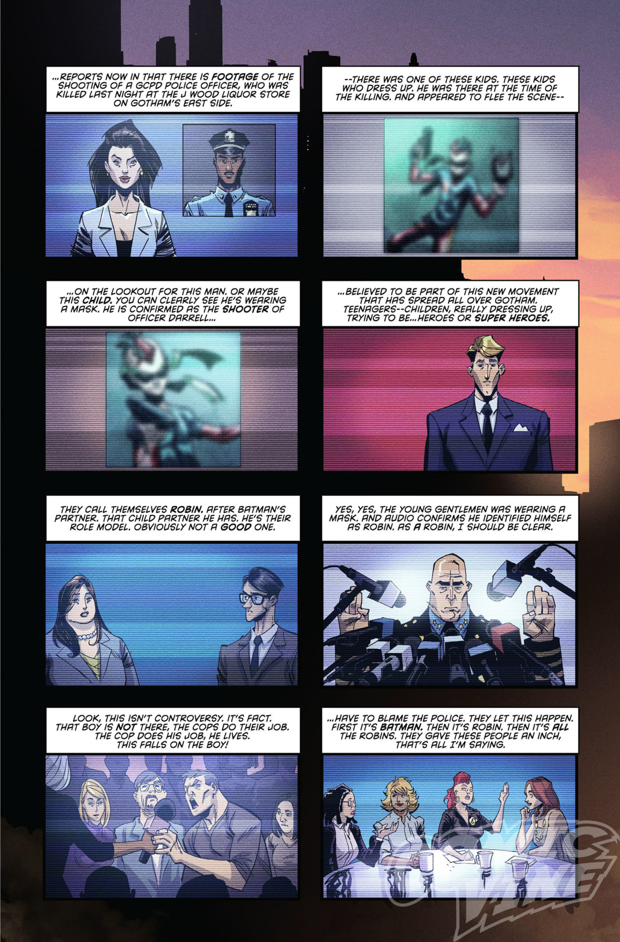 In part 1 of this new epic, it’s Robins vs. cops! Robins vs. Robins! Robins vs. Batman! And Robins vs. the Court of Owls?!