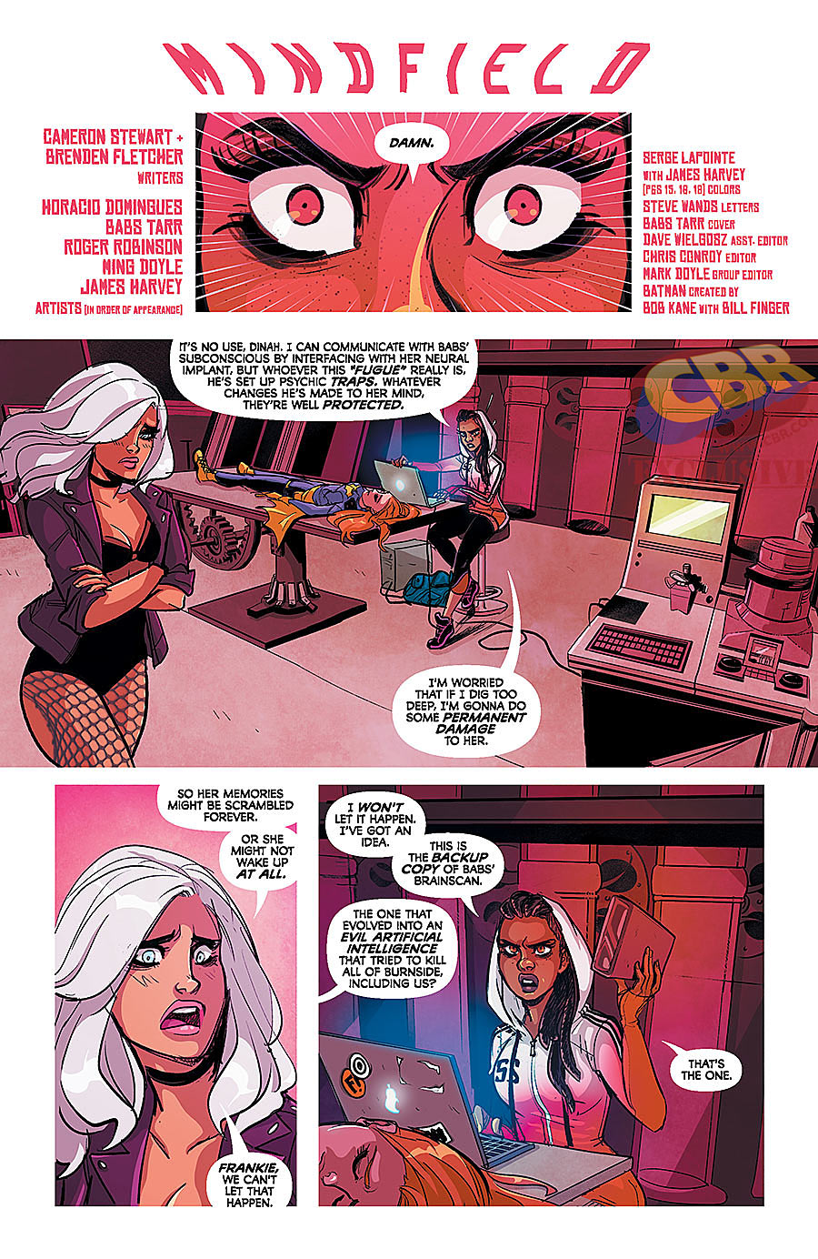 Barbara’s mind has been scrambled and now it’s up to Frankie to save the day, by putting her mind back together. Diving into her mind, she uses the (formerly?) killer AI backup copy of Batgirl’s mind to help in this task, but is she to be trusted, and what kind of dangerous traps are waiting in the mindscape of Barbara Gordon?