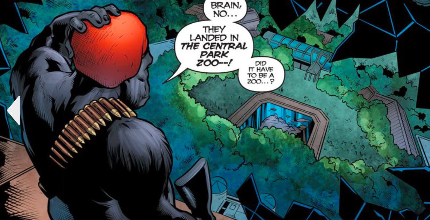 The Titans are forced to defend themselves without harming others under the influence of The Brain in the heavily populated Central Park Zoo. The setting of this issue provides interesting challenges for the team, much to the chagrin of Monsieur Mallah!