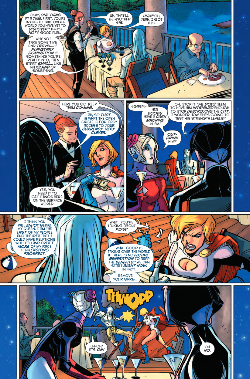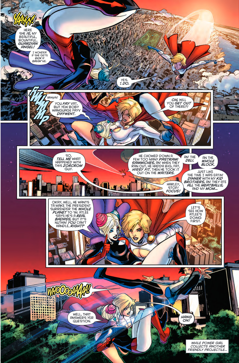 I like the word choice. Power Girl is famous for her bust, but DC appears to be bringing in body positivity. They’ve been doing a great job stepping up their game with representation and working with empathetic characters. These words are unconventional. Harley is unconventional and that is why she’s precious.