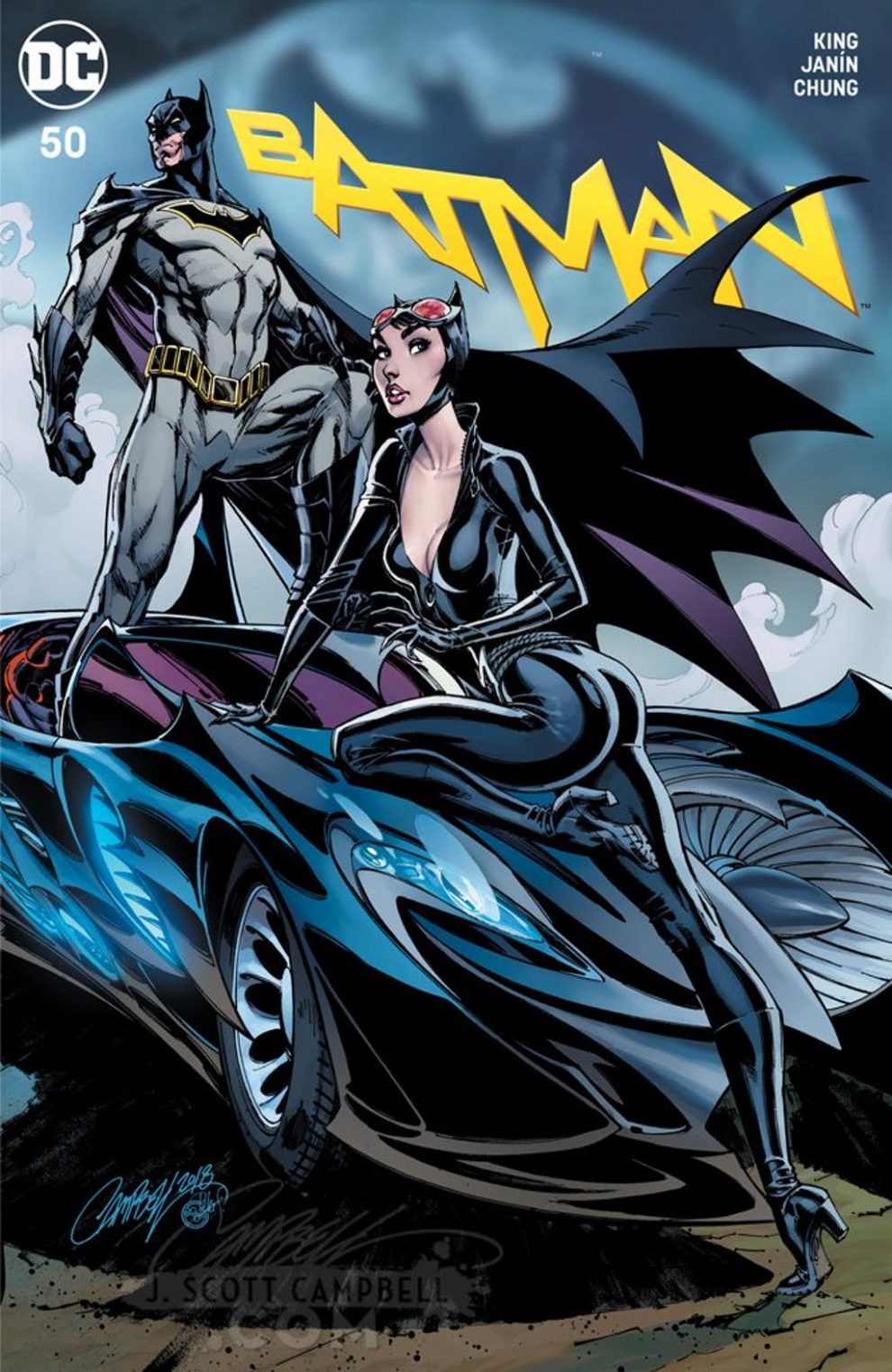 On the left, unfriendly faces stand outside the gates of Arkham Asylum, looking at the happy couple with bad intentions. We’re all very sure at this point that the Joker is going to do something to spoil Batman’s big day, but maybe others like Penguin may also be wedding crashers coming up in issue #50?