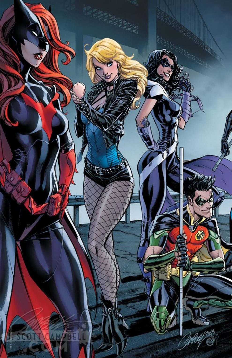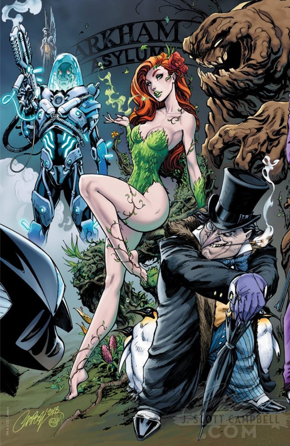 The whole look of the extended cover is really strong. Campbell draws his men tall and heroic, his women are sculpted and beautiful, even Clayface is hulking and monstrous.